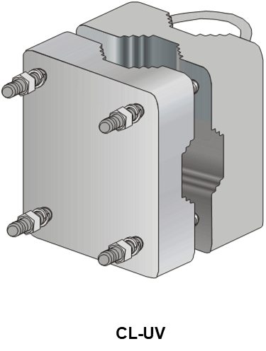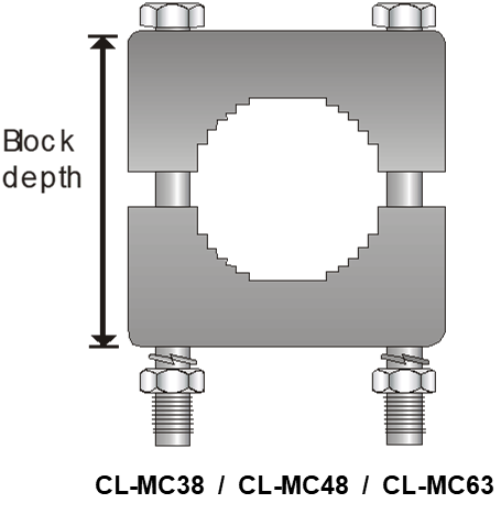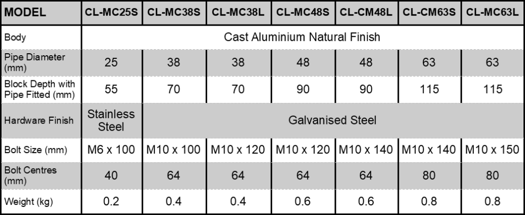 This range of clamps uses two cast aluminium saddle blocks held with steel bolts.