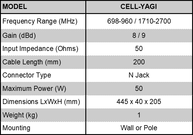 A multi band cellular aerial is available, suitable for outdoor wireless networks operating in the LTE, GSM, CDMA, PCS, 3G, 4G & WLAN frequency ranges making this antenna ideal for outdoor voice and data wireless systems.
