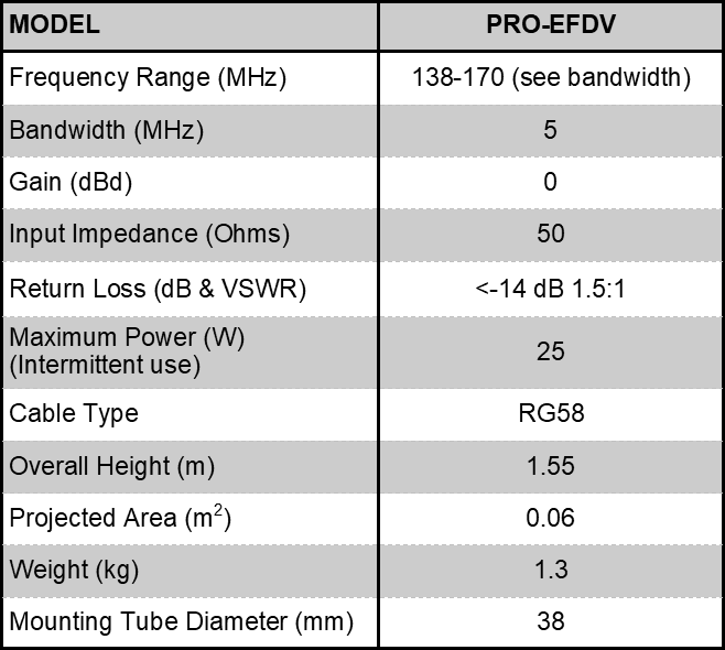 The end-fed vertical half wave antenna is designed within the frequencies of 138 and 170 MHz to suit many applications and environmental conditions. They are ideal for paging or similar systems where a neat and rugged installation is required. These dipoles are easy to install and are pre-tuned with no assembly or tuning adjustments required.